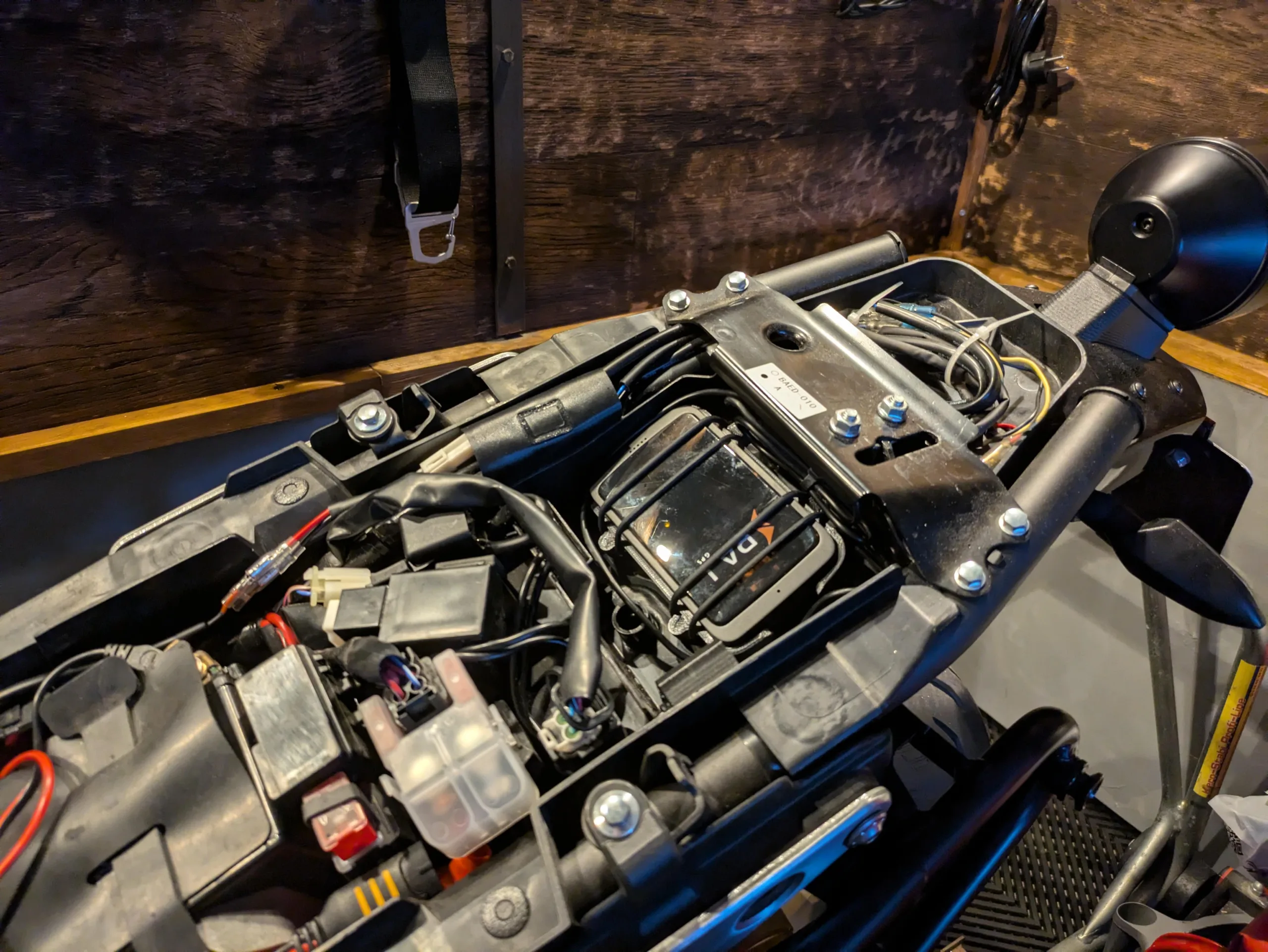 Para la instalación, imprimí en 3D un soporte personalizado que sujeta de forma segura el cargador magnético, lo que permite cargar el rastreador por USB mientras conduzco.