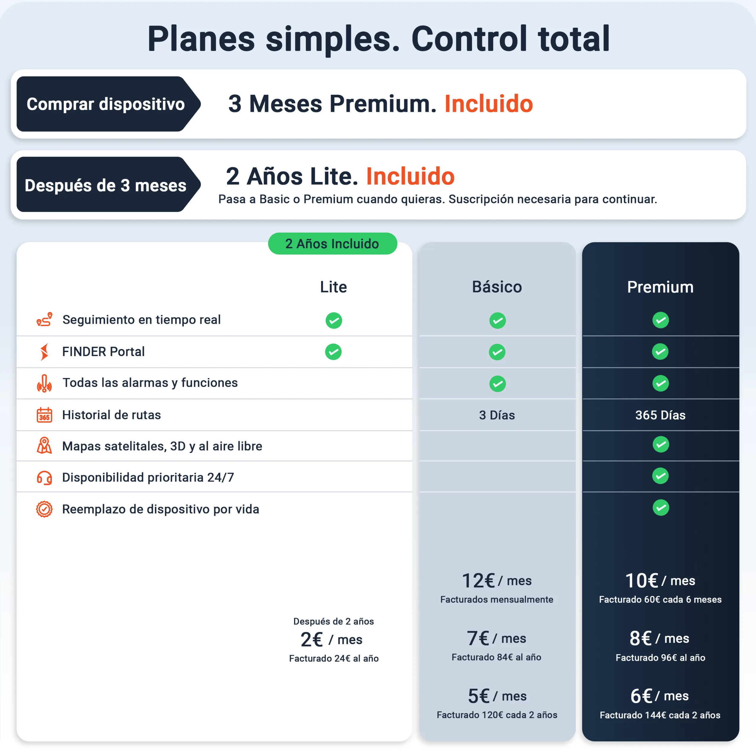 Antes de que finalice su acceso gratuito, le informaremos con antelación por correo electrónico. Después, podrá seleccionar en pocos pasos la suscripción adecuada y seguir aprovechando todas las ventajas de su rastreador.